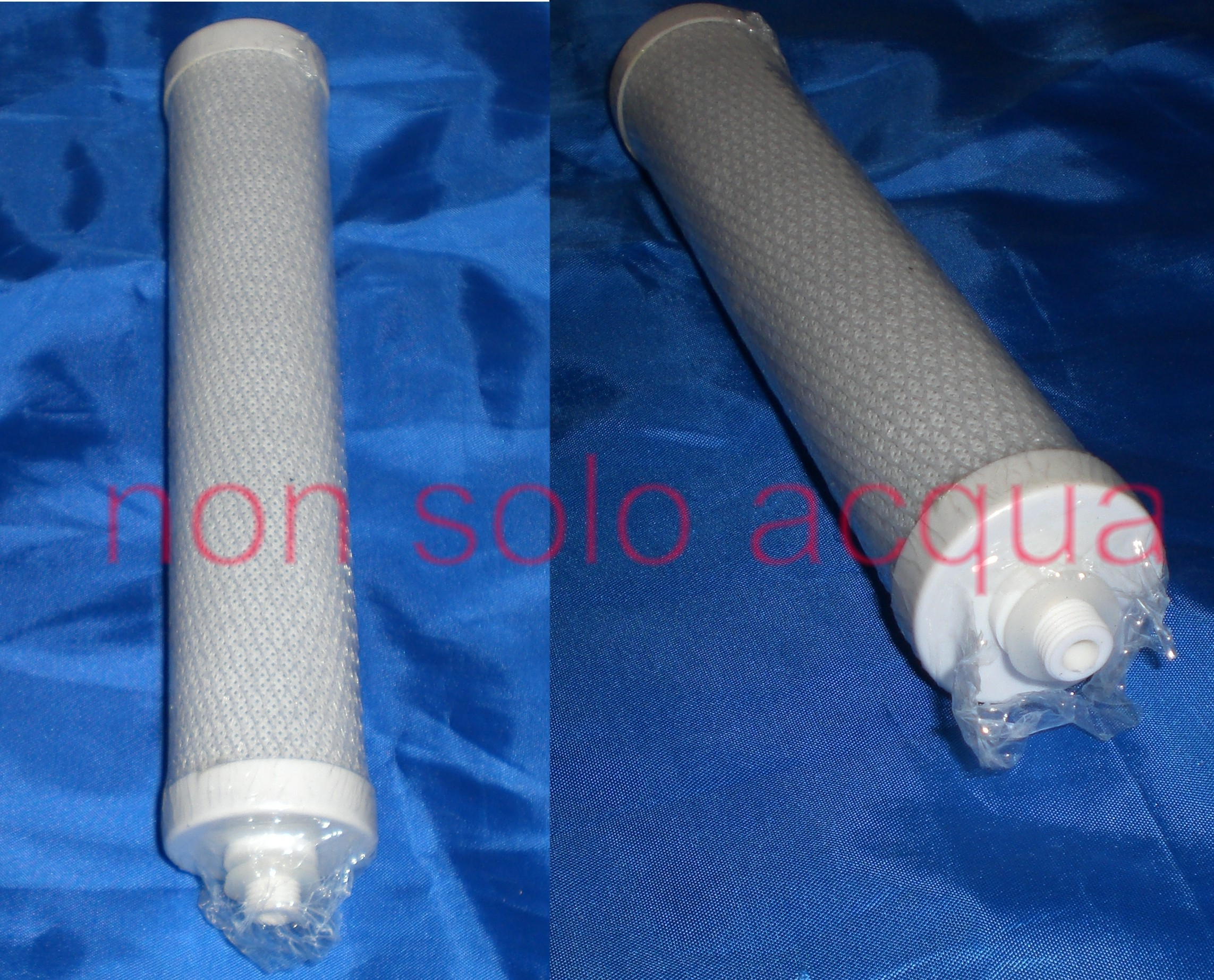 Questo tipo di cartuccia è costituita da una particolare miscela di carbone attivo e polimeri molecolari, pressata e sinterizzata in grado di trattenere da sola la gran parte degli inquinanti chimici presenti nell' acqua, quali: