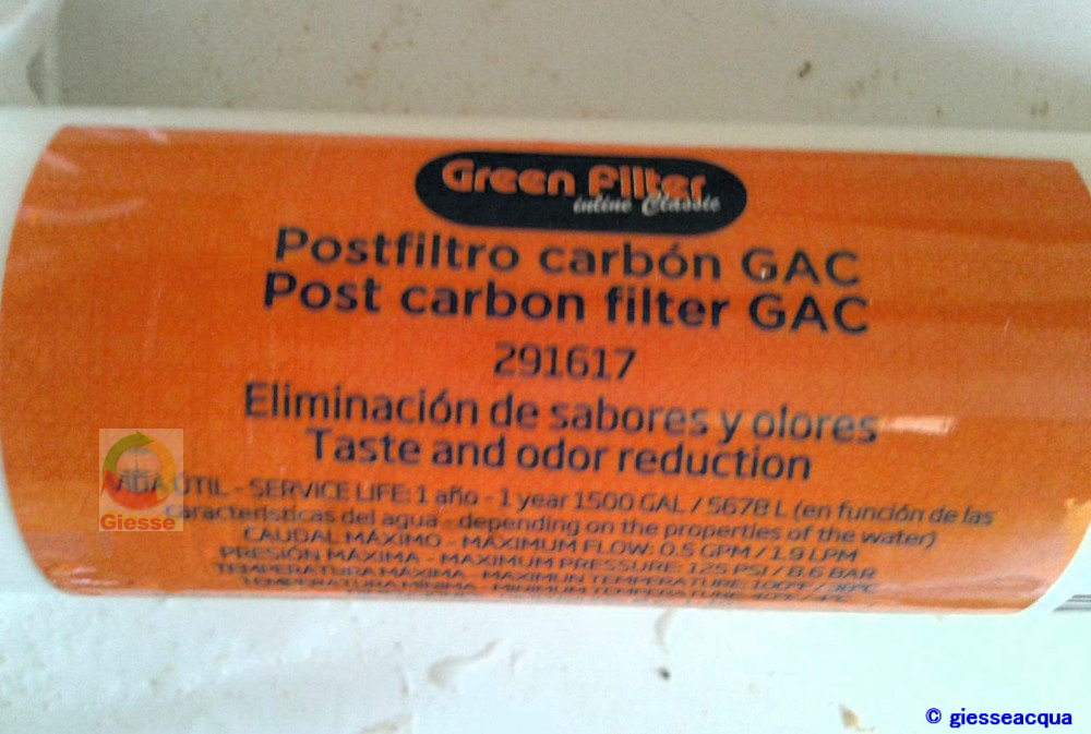 FILTRO IN LINEA Postfiltro CARBONE ATTIVO GAC