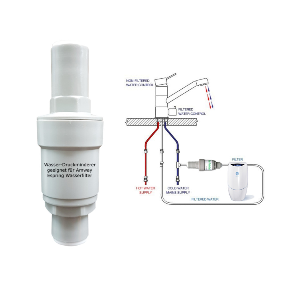 Riduttore di pressione acqua con Valvola di non ritorno a innesto rapido per tubo diametro esterno da 3/8"(9,6 mm) taratura fissa a 2,7 Bar.