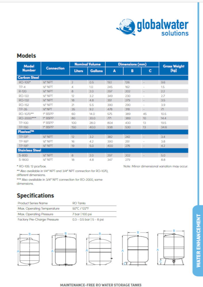 *La quantità del acqua di stoccare nel serbatoio dipende dalla pressione di rete del acqua di condotta, dal aria nel serbatoio, e dalla performance del impianto.