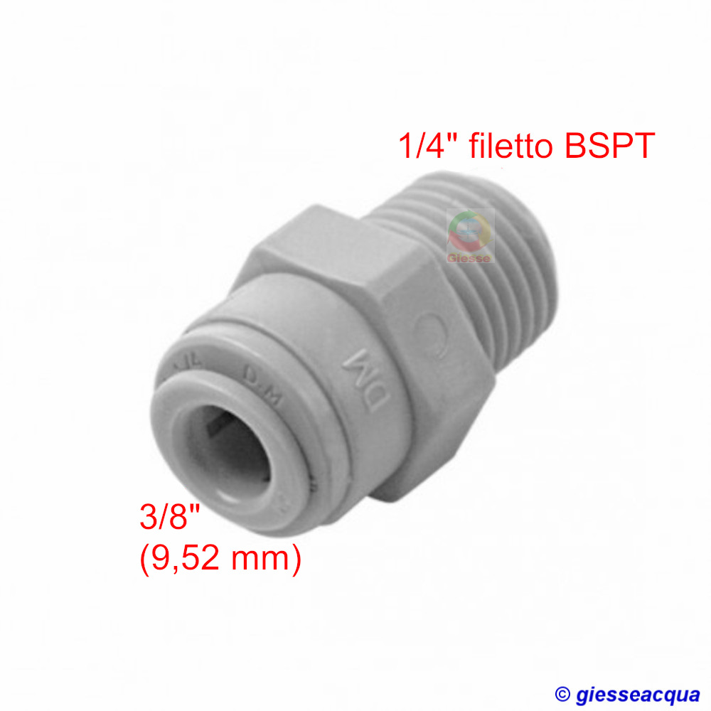 Attacco rapido per tubi diametro esterno 3/8" (9,52 mm) x filetto conico BSPT 1/4" M